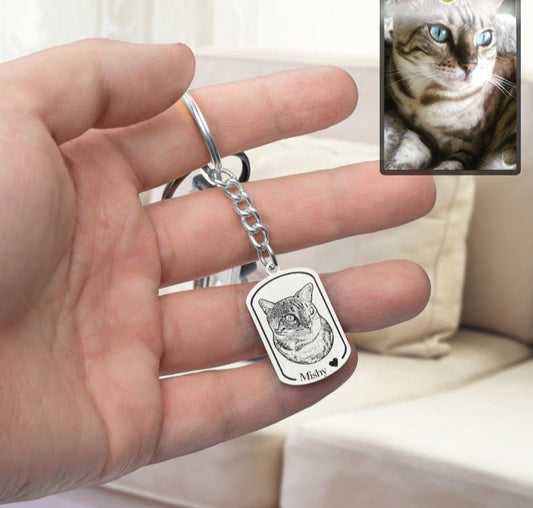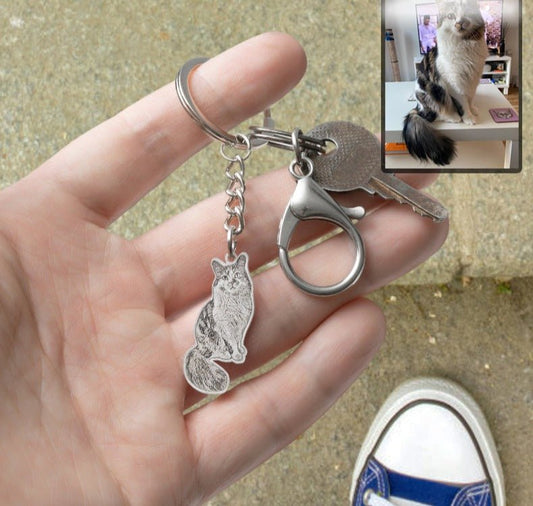 Portachiavi a medaglione rotondo con sagoma di gatto